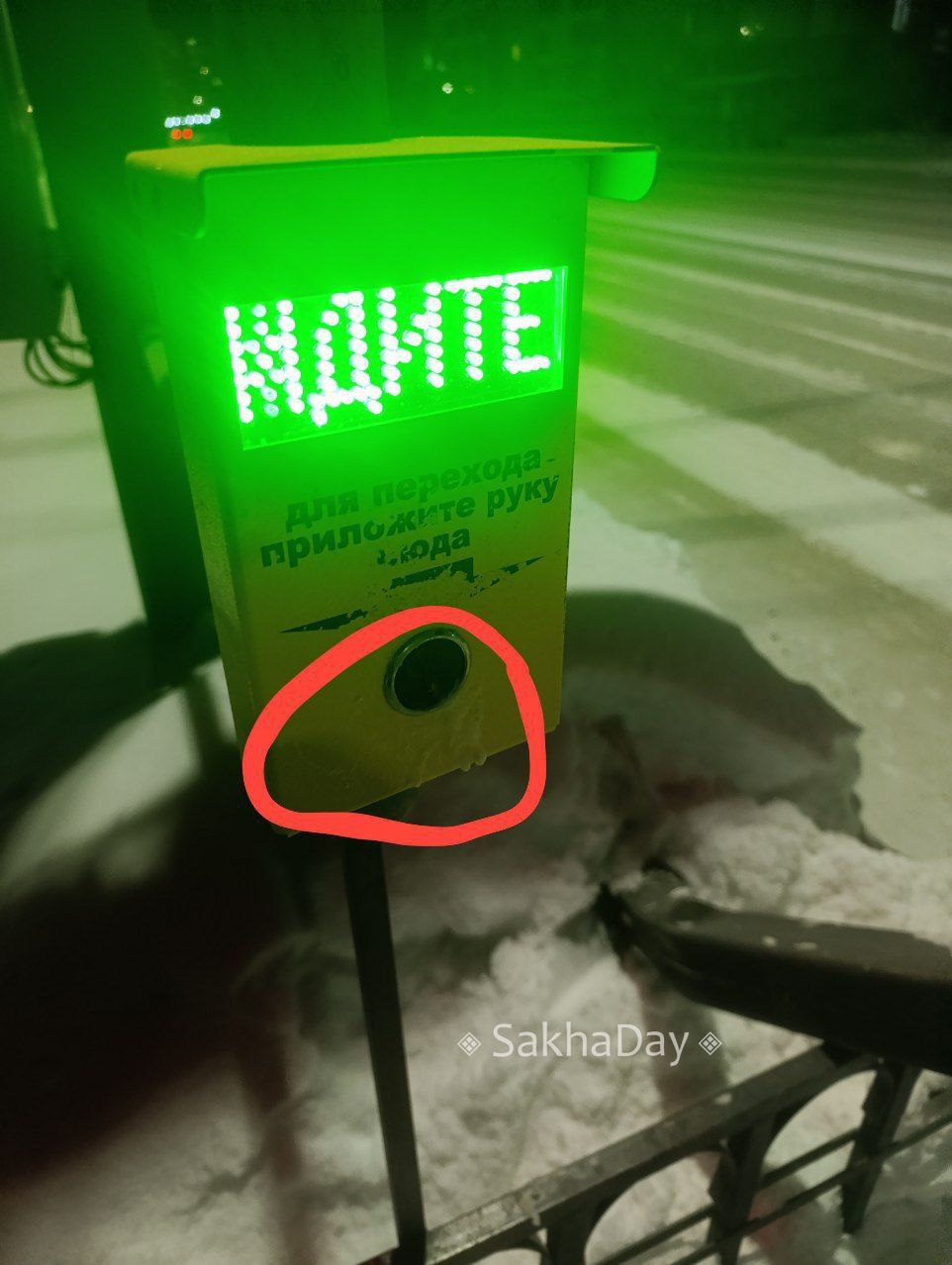 Ну и отношение! На кнопку светофора между 202 и 203 мкр просто плюнули.