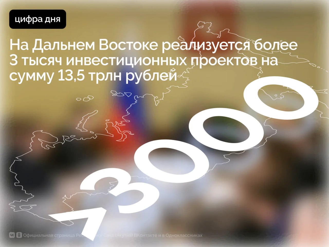 Открывая заседание, заместитель Председателя Правительства Российской Федерации – полномочный представитель Президента Российской Федерации в Дальневосточном федеральном округе, председатель Организационного комитета Восточного экономического форума Юрий Трутнев отметил, что сегодня на Дальнем Востоке реализуется более 3 тысяч инвестиционных проектов на общую сумму 13,5 трлн рублей.