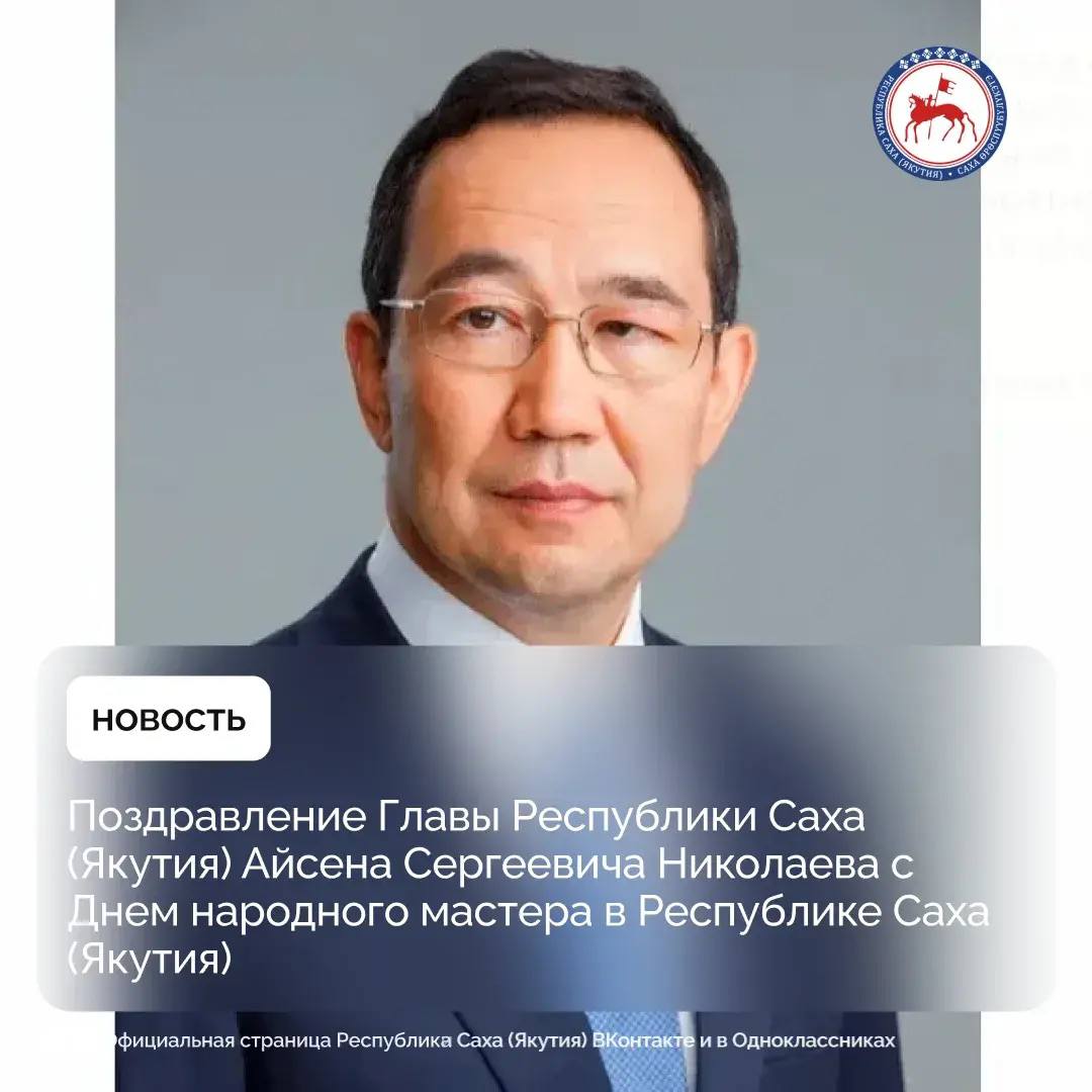 От всей души поздравляю вас с Днем народного мастера! Каждый человек в чём-то мастер. Люди, которые живут на прекрасной якутской земле, вдохновляются нашей уникальной северной природой, просторами, многогранной красотой родного края, традициями и обычаями, создавая прекрасное своими руками.