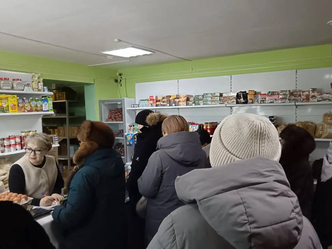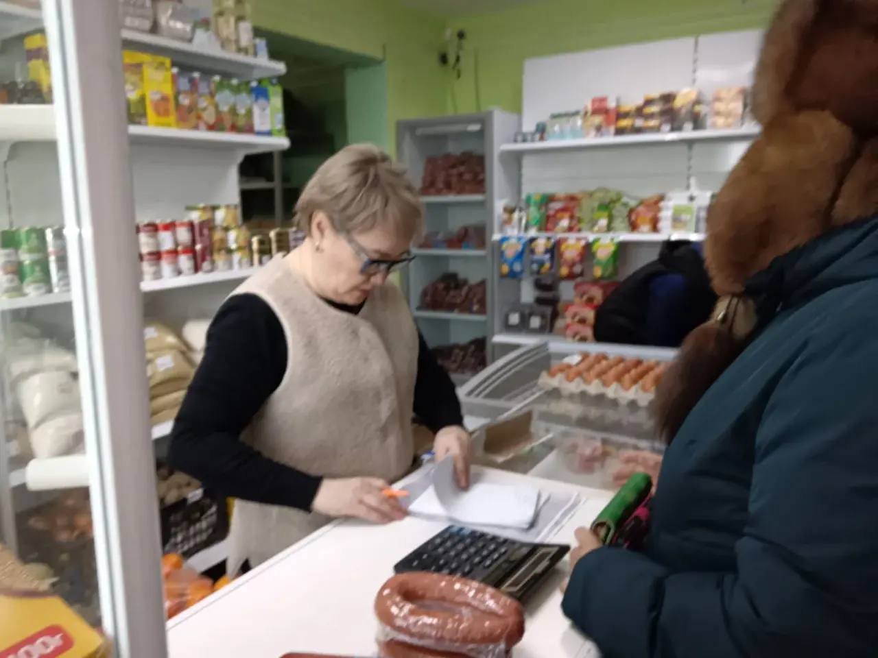 На прилавках магазина уже доступны яйца, молочная продукция, колбасные изделия, фрукты, овощи и консерванты.