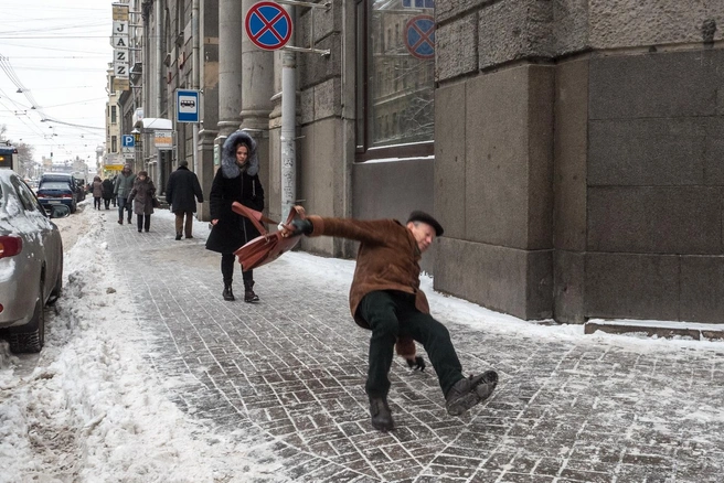 Зима. Выходим из подъезда, и вместо привычного тротуара сталкиваемся с ледяной гладью. Один неверный шаг, и вот уже - полет, боль, гипс на несколько месяцев.