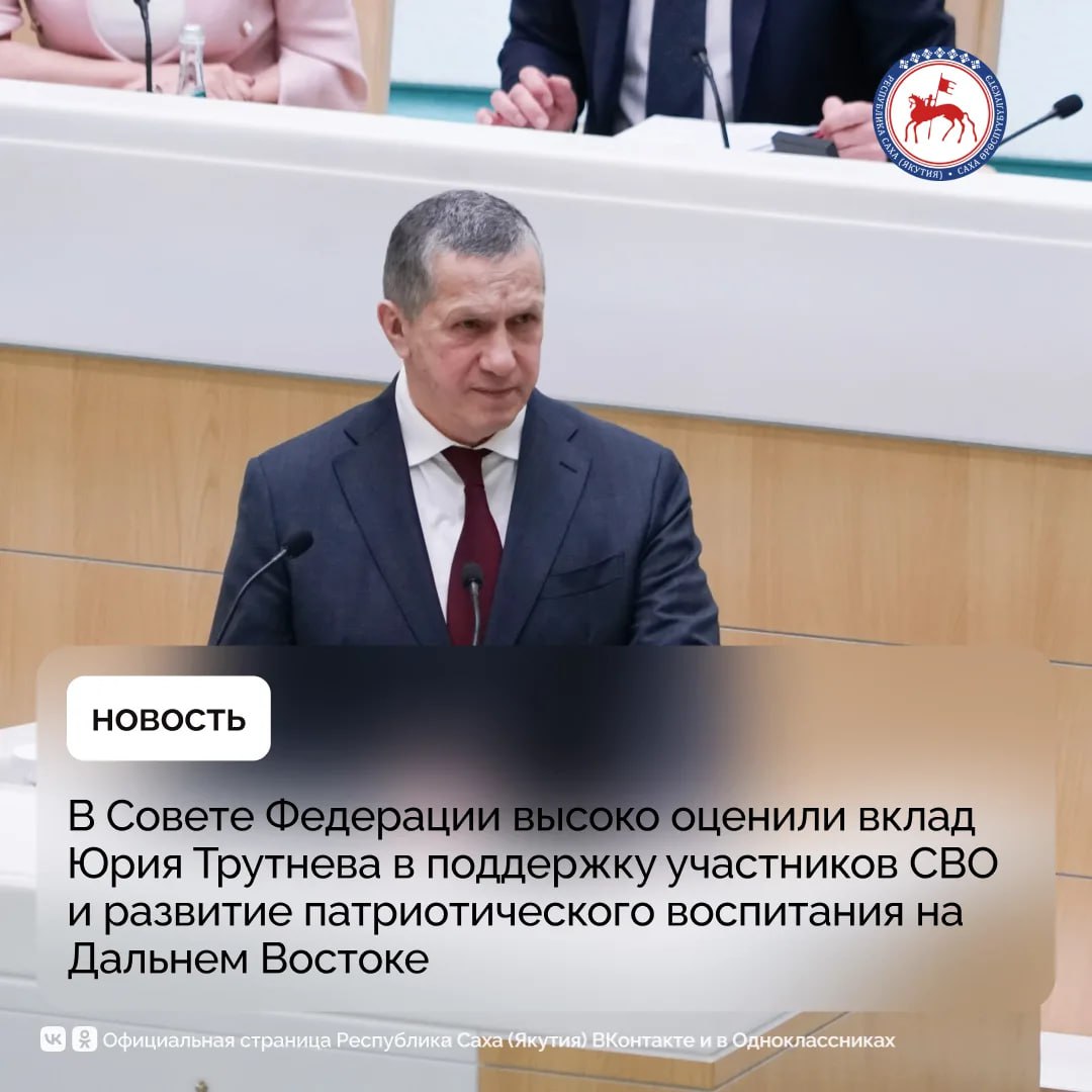 В Совете Федерации в ходе правительственного часа высоко оценили деятельность заместителя Председателя Правительства Российской Федерации — полномочного представителя Президента Российской Федерации в Дальневосточном федеральном округе Юрия Трутнева по поддержке участников специальной военной операции и развитию системы патриотического воспитания на Дальнем Востоке.