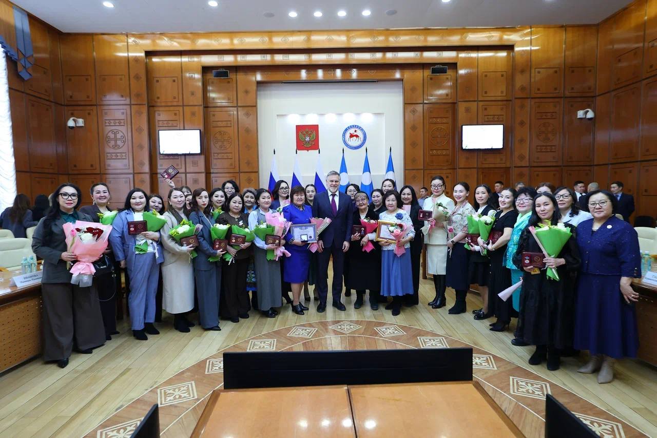 В преддверии Международного женского дня вручил государственные награды многодетным матерям и женщинам, внесшим значительный вклад в развитие и укрепление Якутии