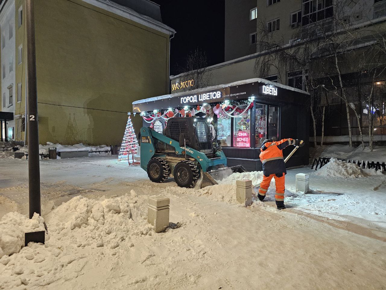 Предприниматели Октябрьского округа активно начали работу по уборке и вывозу снега. Идёт работа по расчистке снега павильона "Город цветов" по проспекту Ленина.