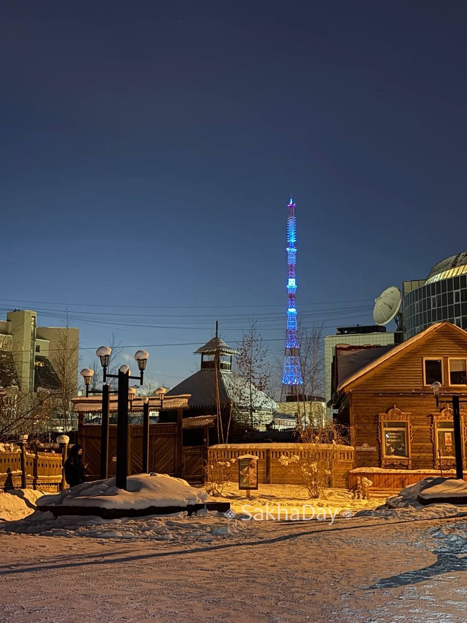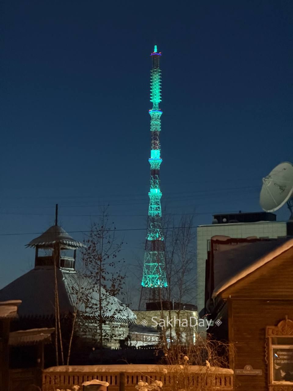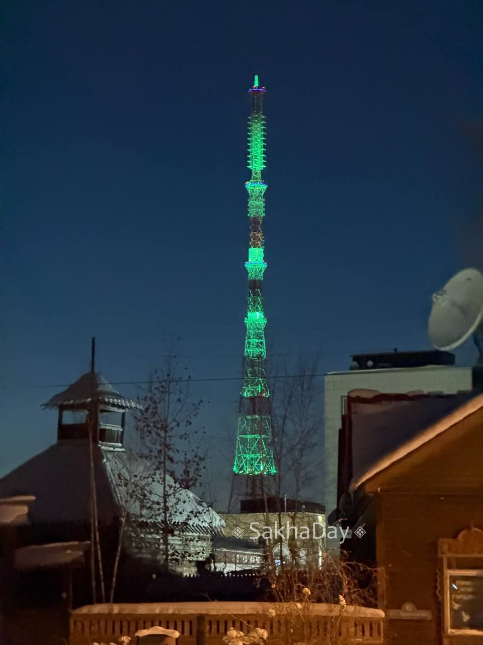 Телевышка в честь праздника зажглась интересными огнями. #дляsakhaday