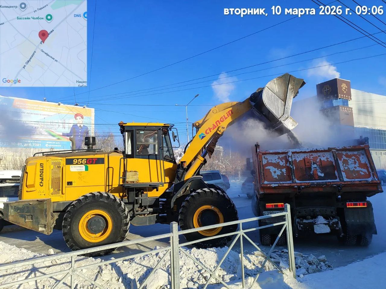В городе продолжаются в усиленном режиме работы по уборке и вывозу снега с улично-дорожной сети, площадей, тротуаров, дворовых территорий и прилегающих территорий к предприятиям и учреждениям.
