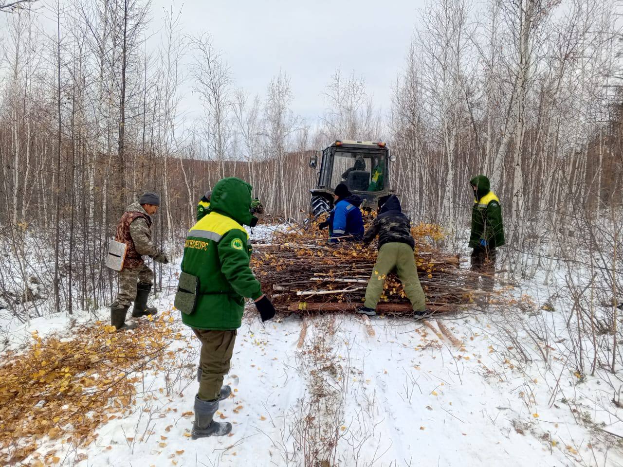 Работники Хангаласского филиала Якутлесресурса прокладывают лесную дорогу до села Едяй