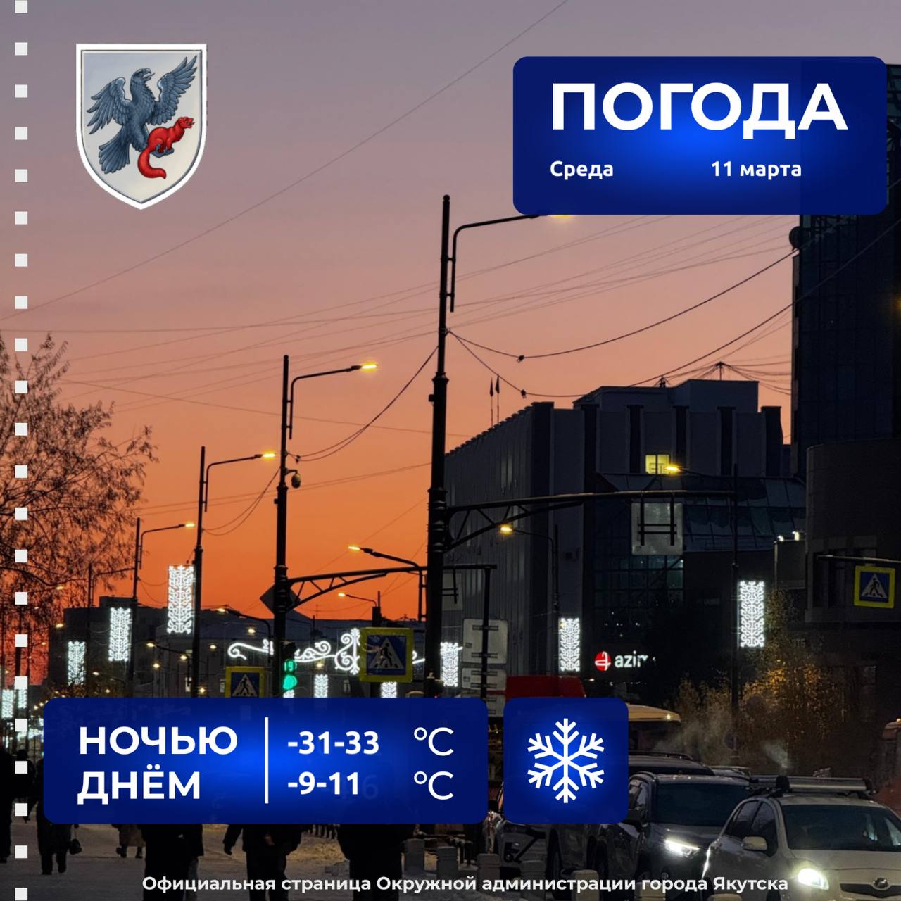 Сегодня в Якутске, по данным Якутского УГМС, преимущественно без осадков, ветер юго-восточный 3-8 м/с с порывами до 13 м/с. Температура воздуха -9 -11°С.Подпишись на Вести Саха в MAX | Предложить новость | Подписаться