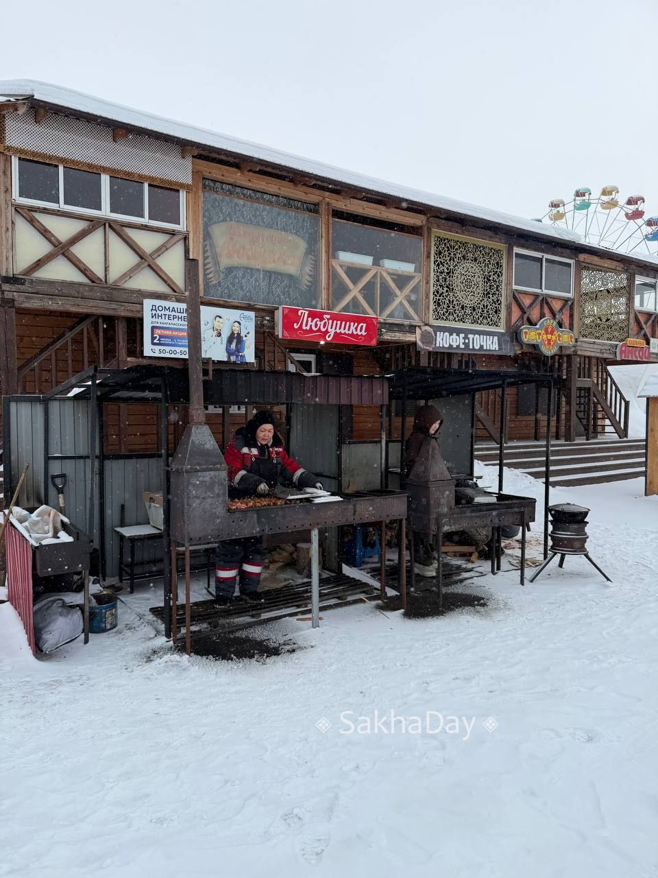 Конкуренция на улице Якутске - за посетителей борются два заведения. Правда, не знаем, разрешено ли на улице готовить шашлык. #дляsakhaday