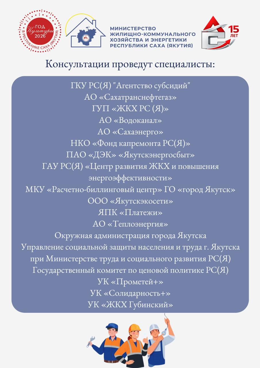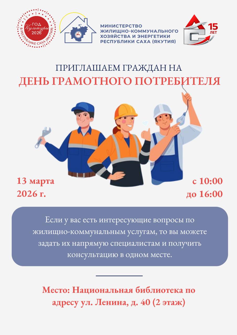 Министерство жилищно-коммунального хозяйства и энергетики Республики Саха (Якутия) совместно с ГКУ РС(Я) «Агентство субсидий» приглашает жителей и гостей Якутска на акцию по консультированию граждан «ДЕНЬ ГРАМОТНОГО ПОТРЕБИТЕЛЯ»