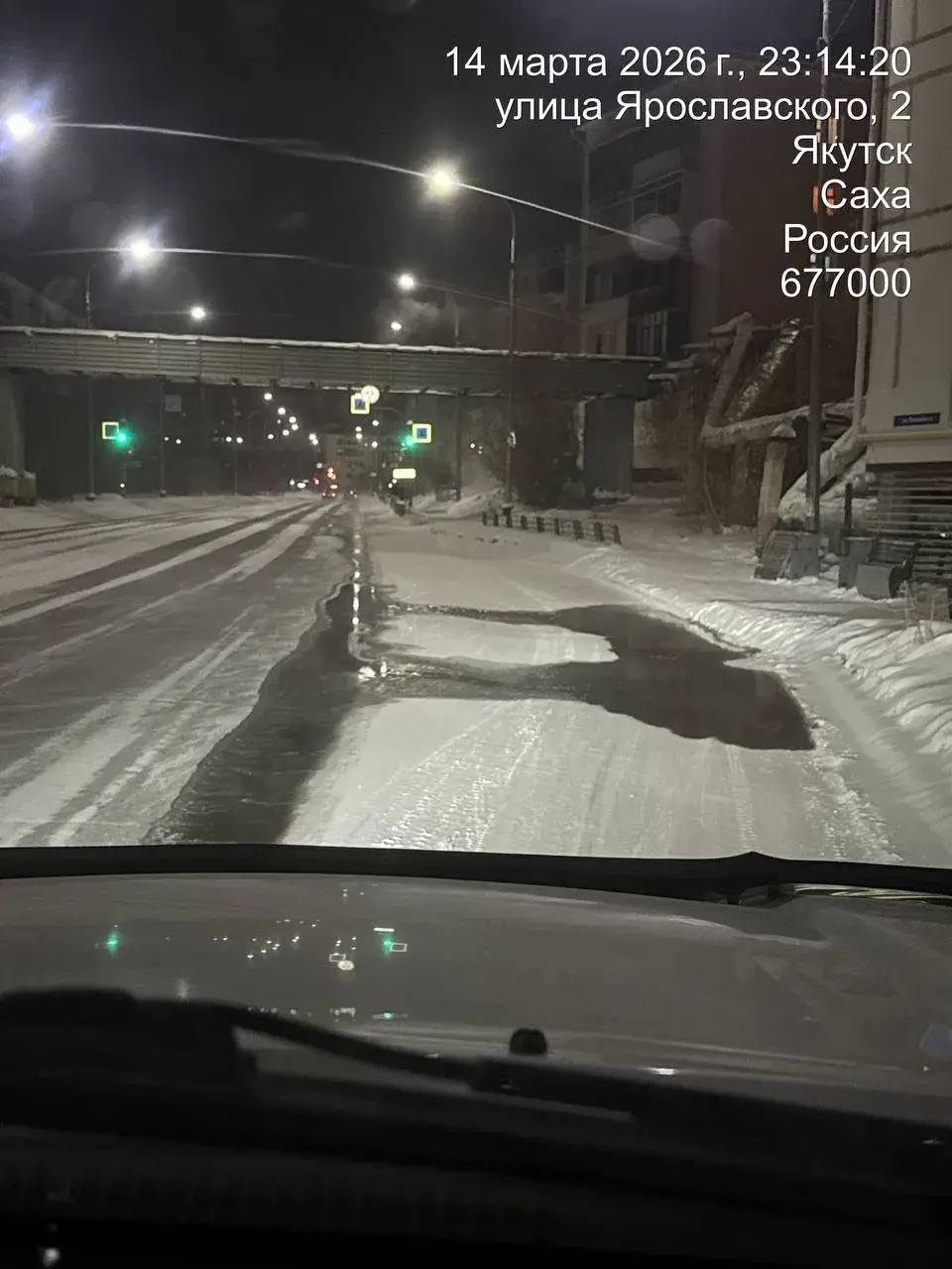 Сотрудниками АО «Якутдорстрой» в ходе плановых работ по расчистке дорожного полотна была обнаружена течь у дома № 6 по ул. Ярославского. Информация оперативно передана в УК «ЦАДС».