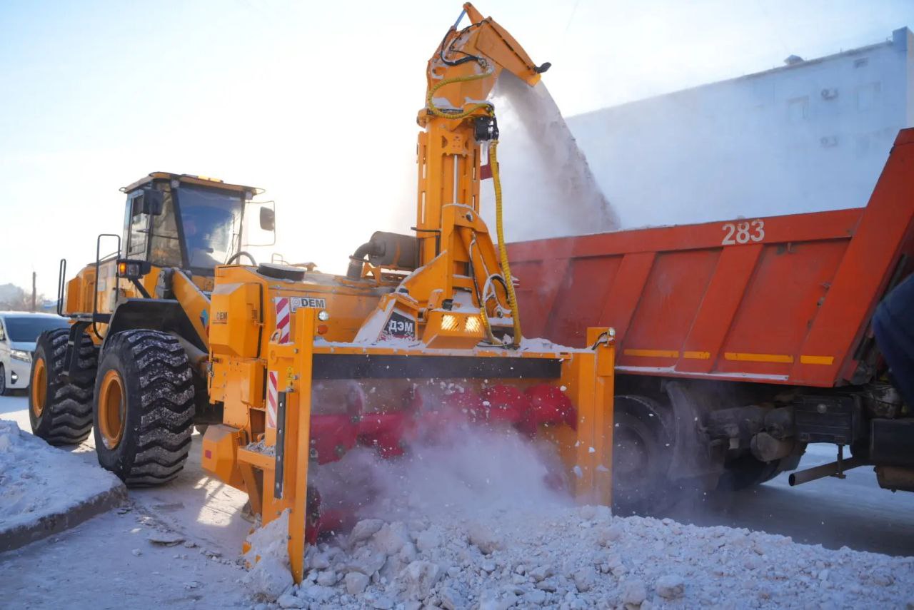 Сегодня осмотрели их в эксплуатации. Операторы говорят, что техника достаточна понятна и предсказуема в управлении, существенно ускоряет погрузку в самосвал снежных отвалов. «Камаз» заполняет в считанные минуты.