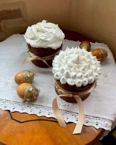 Поскольку тесто бездрожжевое, оставьте его на поднятие на 2-2.5 см от верхушки формы. Выпекайте в заранее разогретой до 180 градусов духовке. Мелкие куличи запекаются 35-40 минут, более крупные могут потребовать час или больше. Проверяйте готовность деревянной палочкой — она должна выйти сухой!