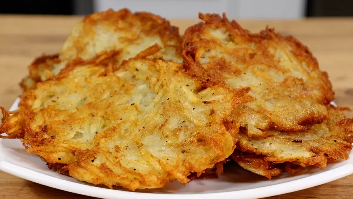 - Приготовление: натираем картофель и лук, добавляем остальные ингредиенты, хорошо перемешиваем и жарим до золотистой корочки.