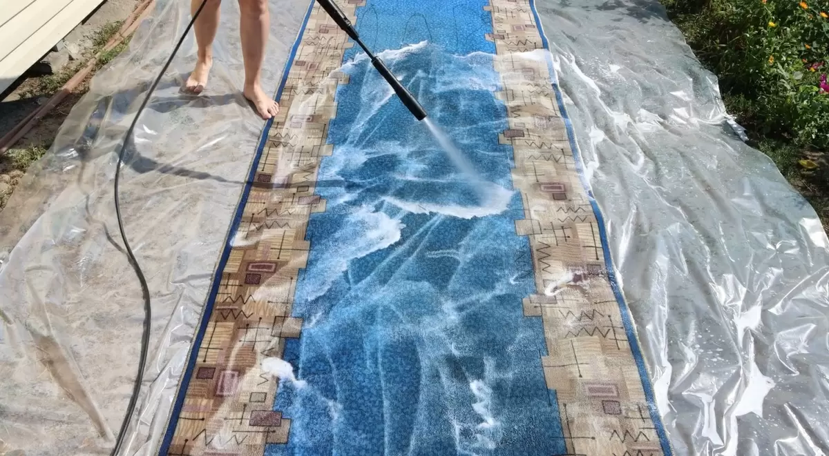 - Мойка высокого давления: Идеально подходит для дачи или открытых пространств. Высокая скорость и удобство делают эту методику популярной, но важно следить за напором воды, чтобы не повредить ворс.