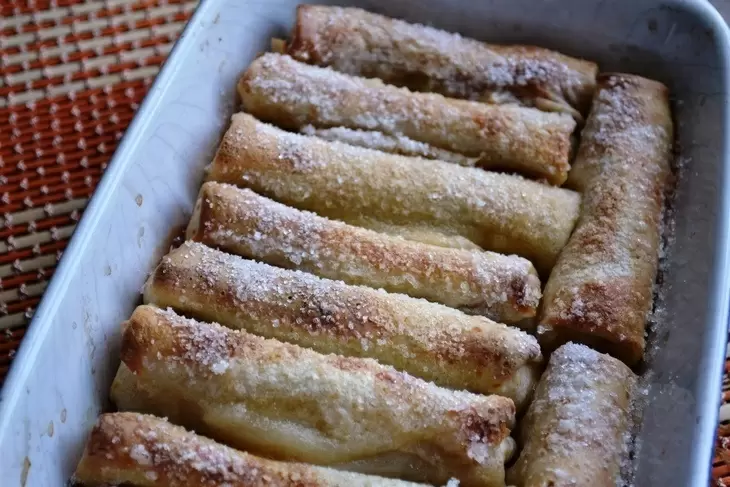 Чтобы собрать блюдо, на каждый блинчик кладут ложку яблочного пюре, сворачивают и укладывают в форму для запекания. Сверху сбрызнуть кальвадосом и запекать в духовке при 200°C около 20 минут. Это удивительное сочетание обеспечит восхитительный вкус и неповторимый аромат, напоминая о лучших традициях обеих кухонь.