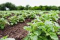 На каждую порцию разместить несколько листьев зелени. Затем перейти к созданию «божьих коровок»: черри разрезать пополам и сделать надрезы для имитации крыльев.