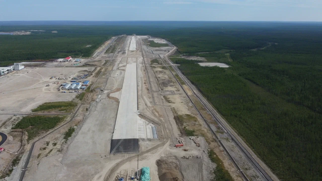 На объектах аэродромной инфраструктуры подрядной организацией выполняются работы по устройству искусственной взлетно-посадочной полосы (ВПП) параметрами 2 85642 метра. В настоящий момент общая строительная готовность по объектам лётного поля составляет 68%. В объём работ включено строительство 18 мест стоянки воздушных судов, рулежных дорожек РД-E и РД-F, перрона, сооружений связи и светообеспечения (ССО), установка метеорологического оборудования. Кроме того, ведётся прокладка патрульной дороги протяженностью 8 км, монтаж периметрового ограждения (11,6 км) и строительство очистных сооружений ливневого стока. Реализация данных мероприятий в рамках нацпроекта направлена на повышение надёжности и безопасности авиаперевозок.