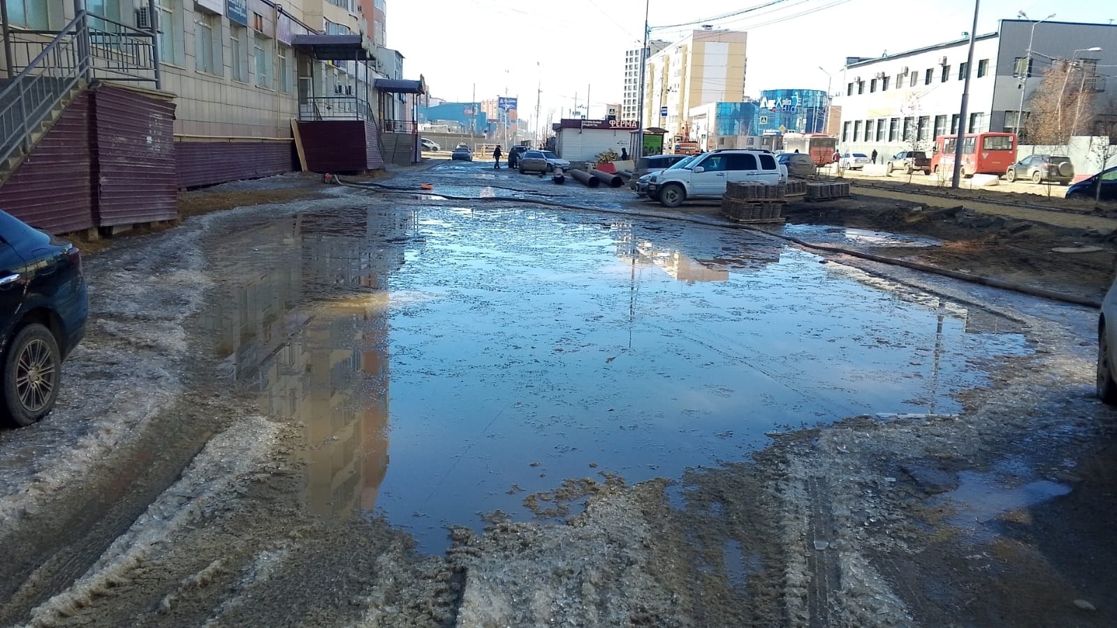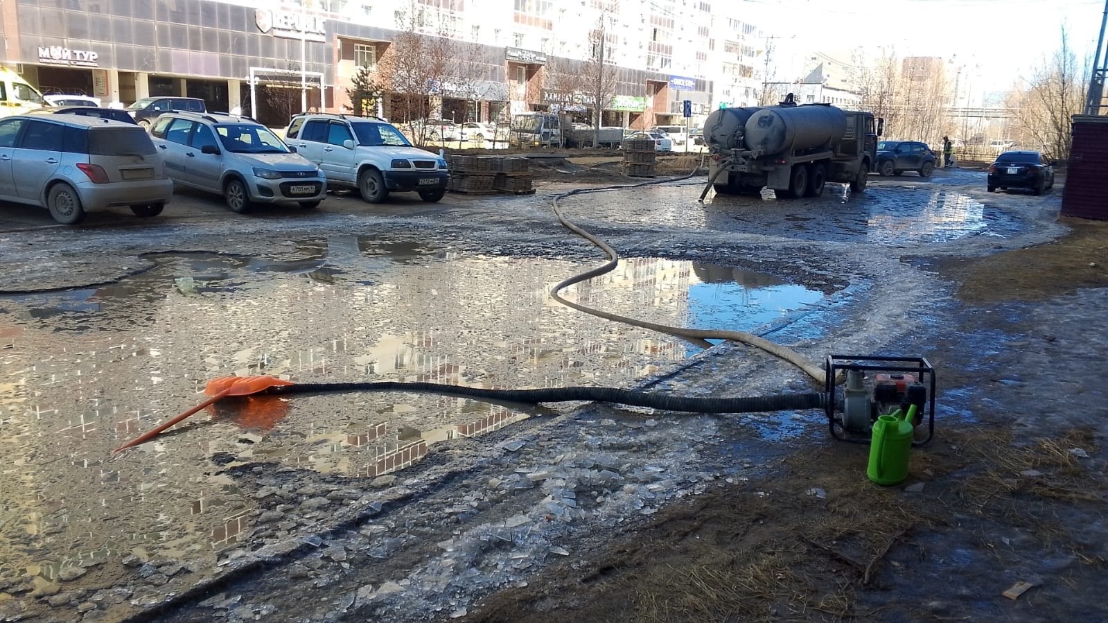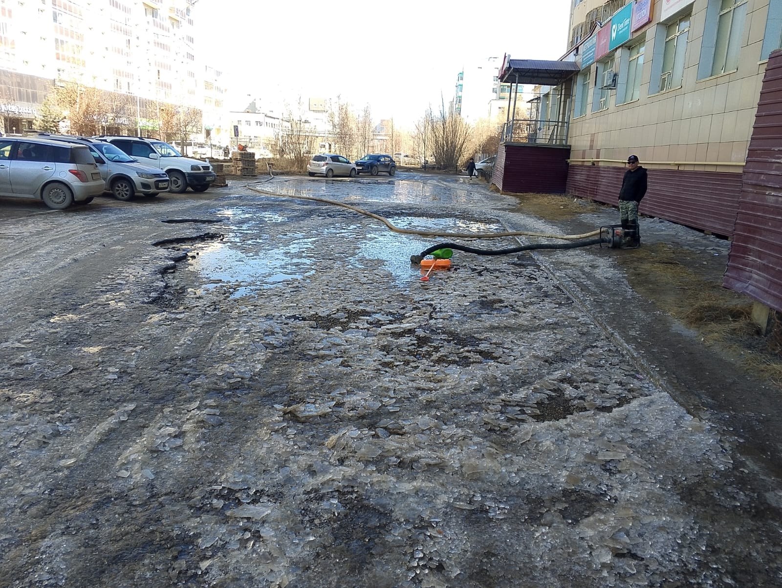 Силами муниципальных дворников проводится откачка талых вод с заниженных мест на территории округа