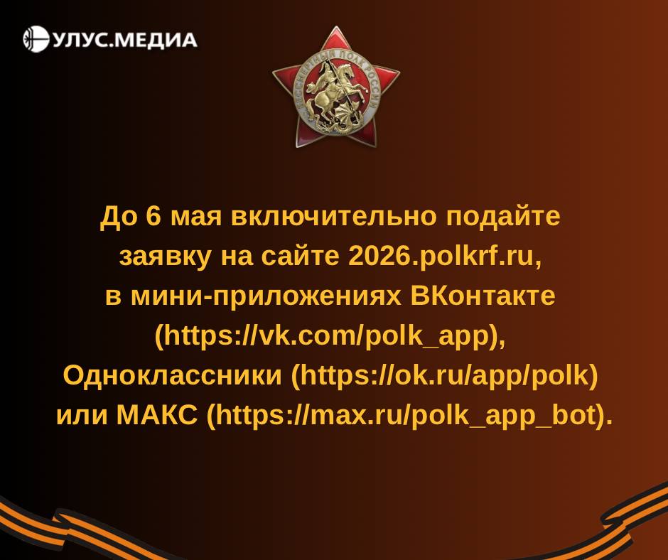 9 мая в 12:00 по местному времени трансляция начнётся на сайте 2026.polkrf.ru и экранах всей страны.