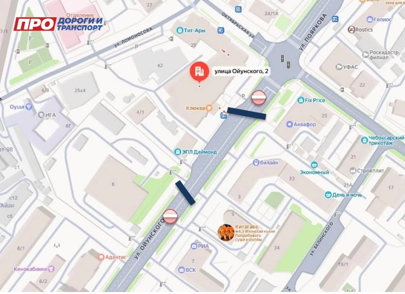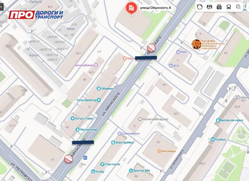 Напоминаем об ограничении движения по ул. Ойунского с 24 по 26 апреля 2026 года — от дома №6 до дома №2