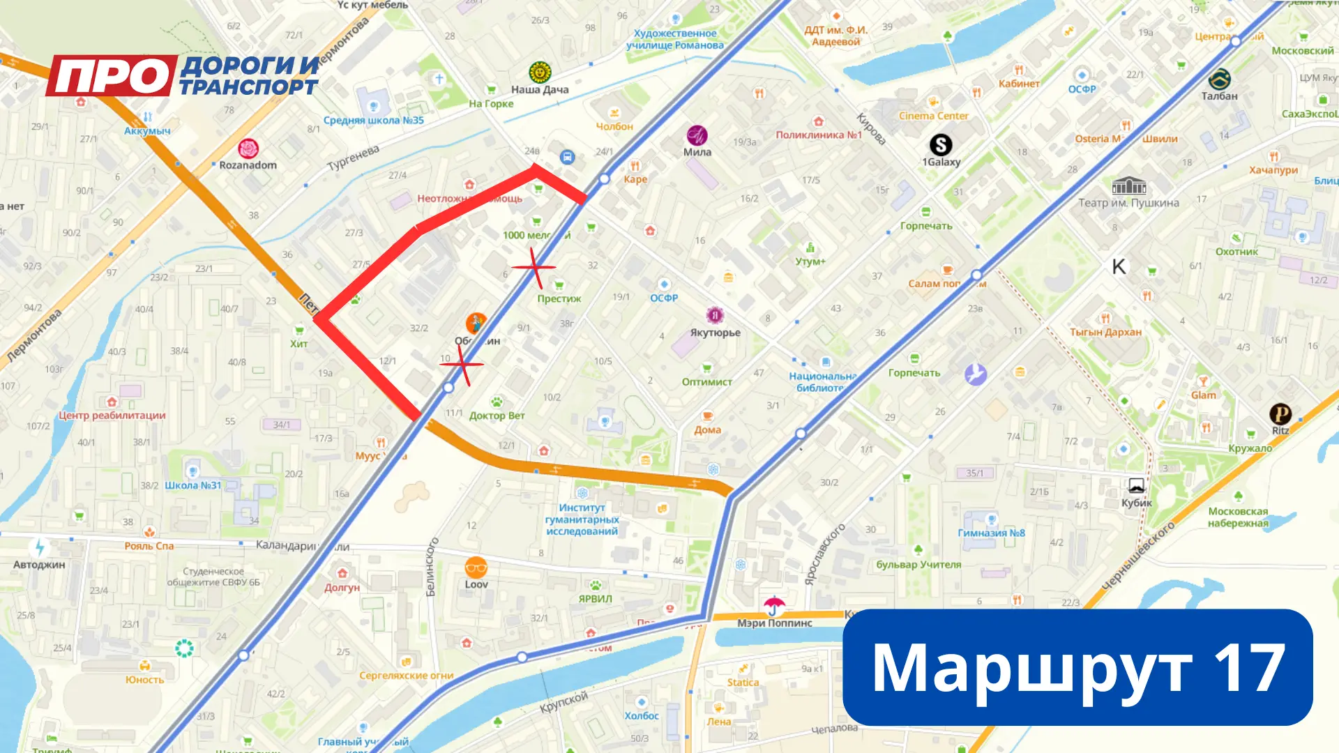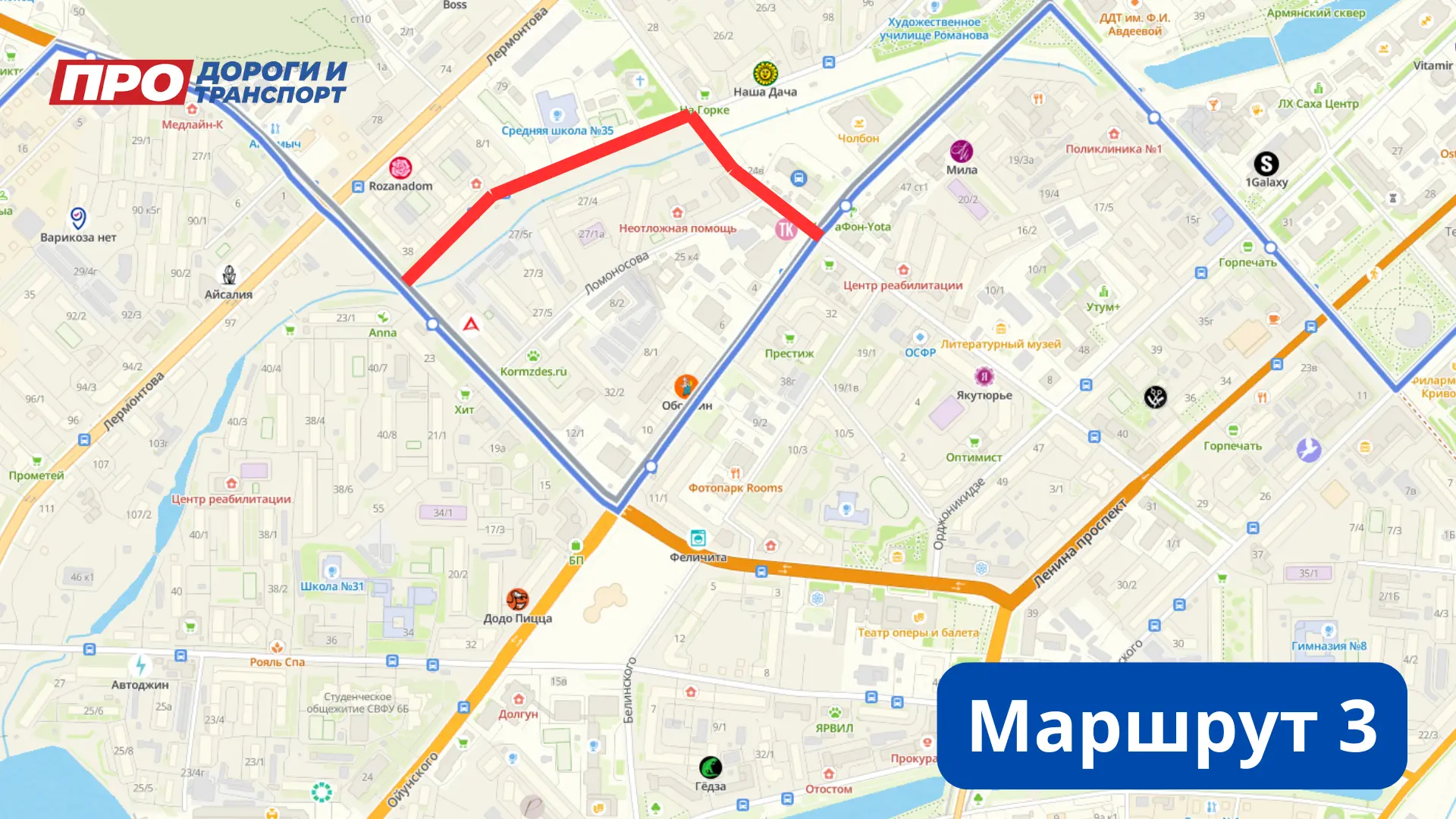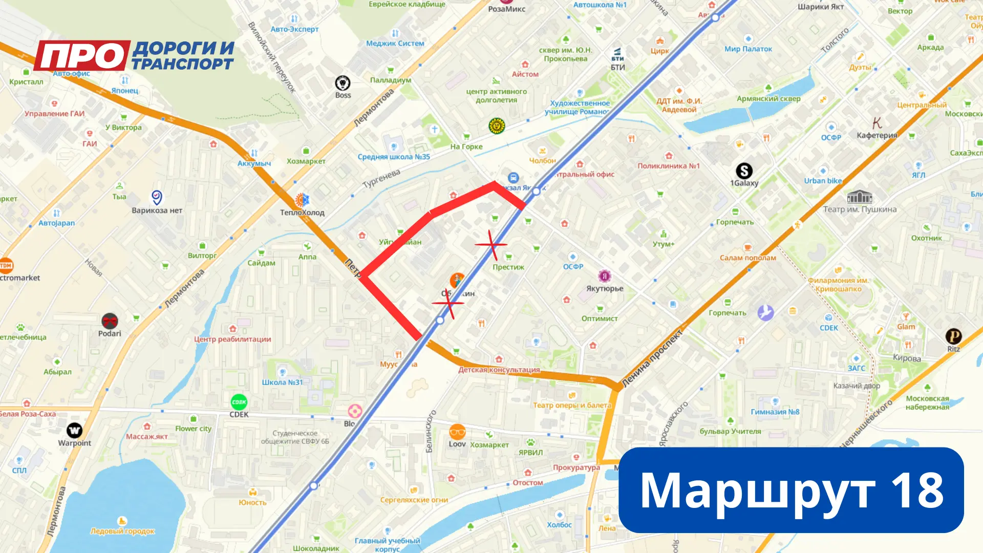 В связи с проведением работ по укладке труб подсети канализации на улице Ойунского, публикуем временные схемы объездов маршрутных автобусов