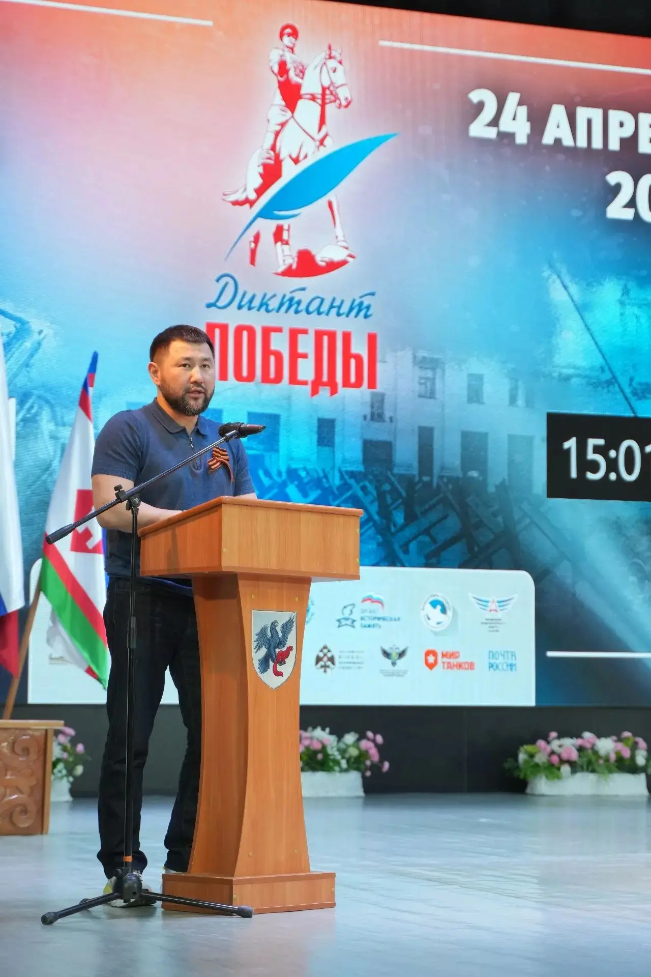 По приглашению Детского общественного совета при главе г. Якутска принял участие в Диктанте Победы на площадке во Дворце детства им. Ф.И. Авдеевой, где собралось более 400 участников.