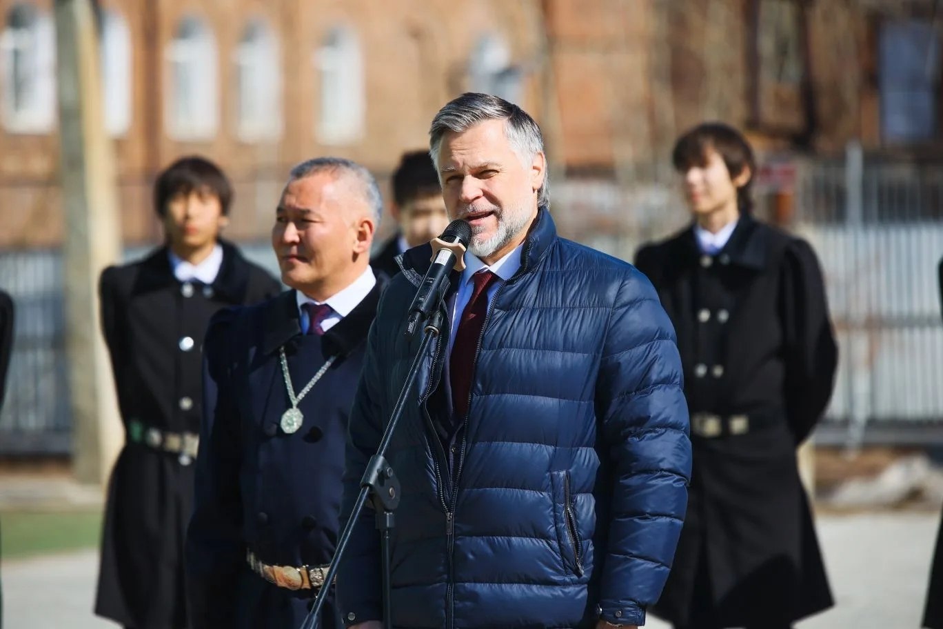 Обращаясь к участникам, отметил вклад школы в подготовку сильных и мотивированных выпускников, а также подчеркнул значение воспитания уважения к истории родного края.
