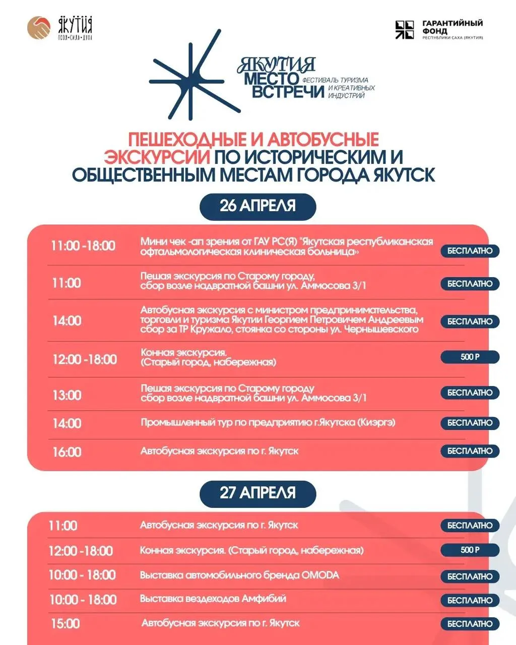 Держите полную программу фестиваля туризма и креативных индустрий «Якутия — место встречи».