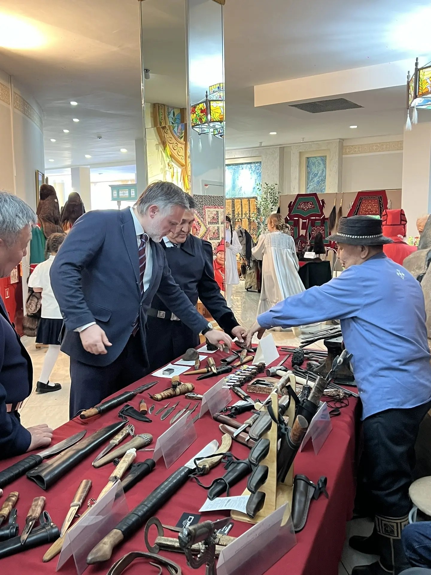 После торжественного собрания общественности, посвященного Дню Республики, посетил выставку-ярмарку народных мастеров во дворце культуры имени Марка Николаевича Жиркова.