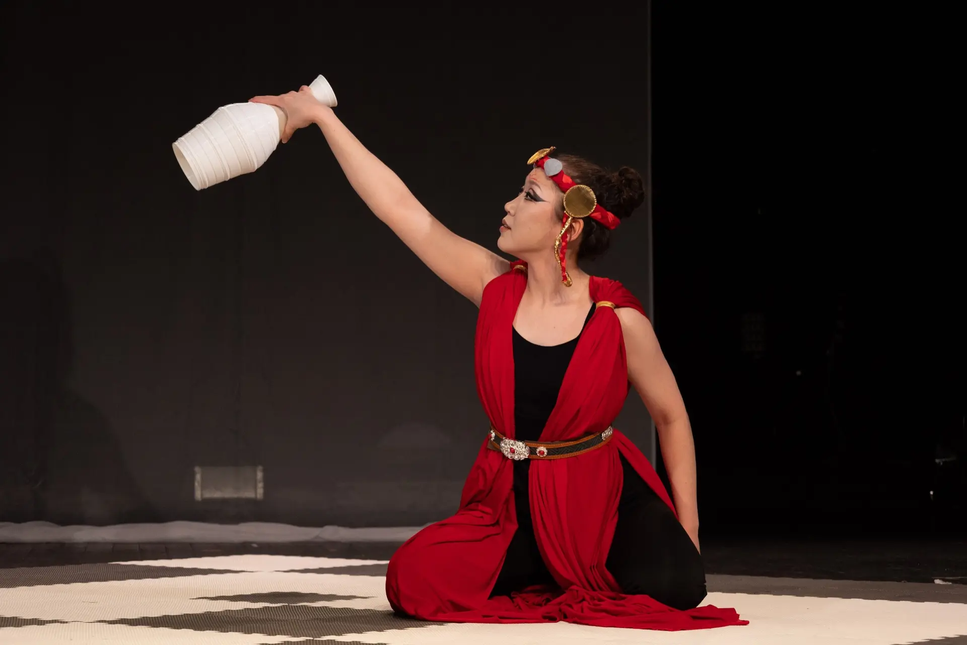 Монологи Медеи звучат через тойук — эпическое песнопение, которое переносит зрителя в иное пространство, где каждое слово и движение обретают сакральный смысл. В финале, вместо привычной трагичной развязки, где Медея мстит, она проходит ритуал перехода, вознося своих детей в мир вечного света. Это не просто история мести, а глубокая рефлексия о столкновении миров, о том, что смерть — это не конец, а возвращение к свету.