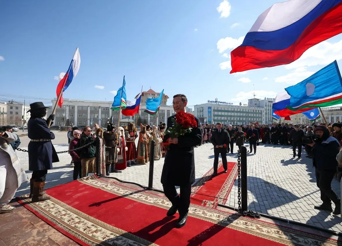 «27 апреля мы отмечаем один из самых значимых праздников. Эта дата занимает особое место в истории республики. В 1922 году выдающиеся сыны народа саха — Максим Аммосов, Платон Ойунский, Исидор Барахов, Степан Аржаков, Степан Васильев и их единомышленники — заложили основы нашей государственности, образовав Якутскую АССР», – отметил Айсен Николаев.