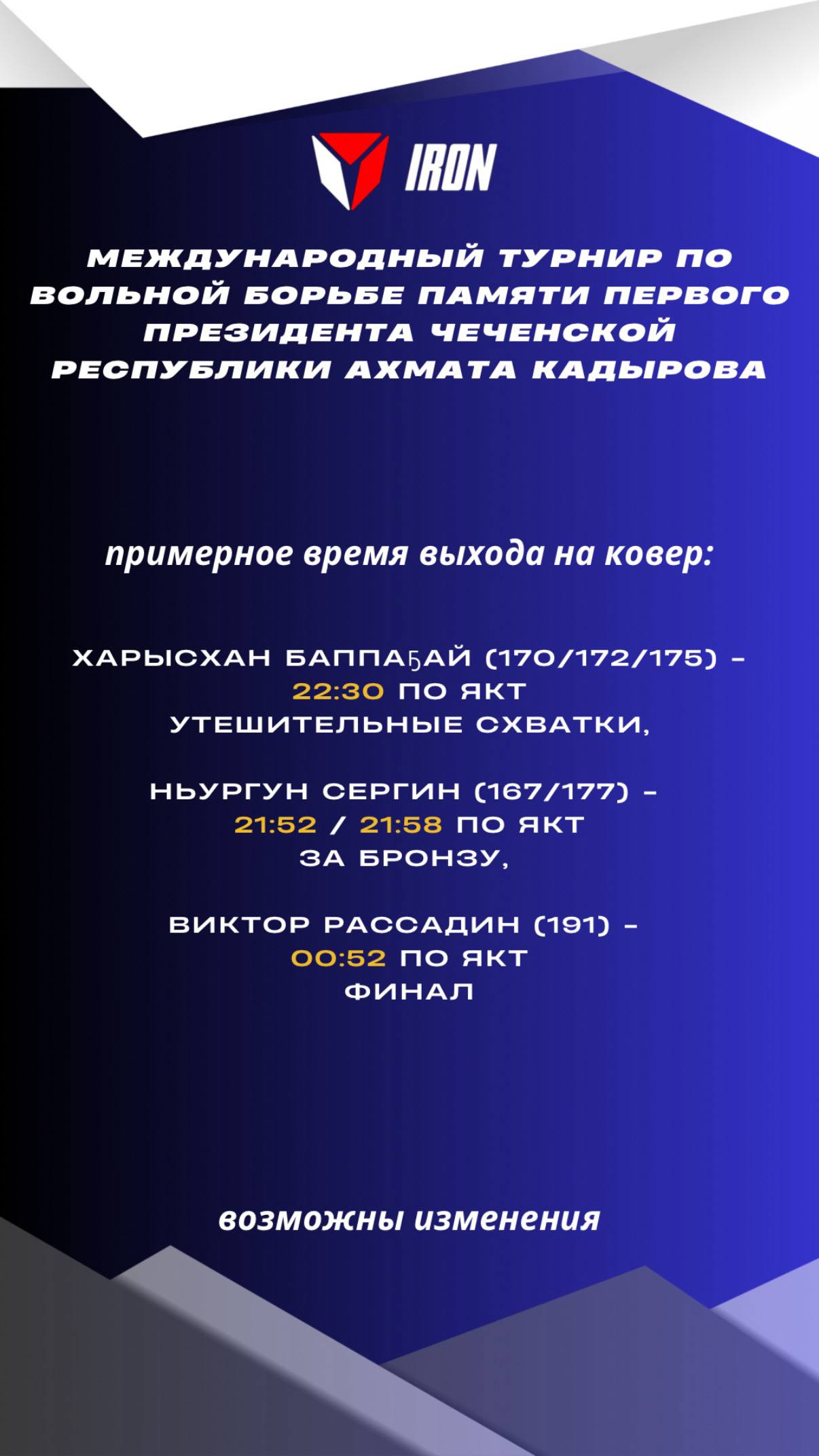 примерное время выхода на ковер (возможны изменения):