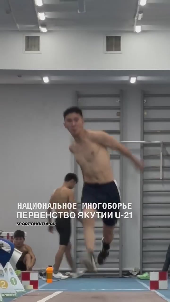 В состязаниях принимают участие 22 боотура и 7 девушек Первый вид - якутские национальные прыжки 3х3.