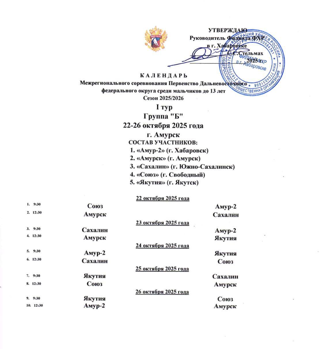 В г. Амурск Хабаровского края, в Ледовом катке "Территория льда" стартует Первенство ДФО среди мальчиков до 13 лет.