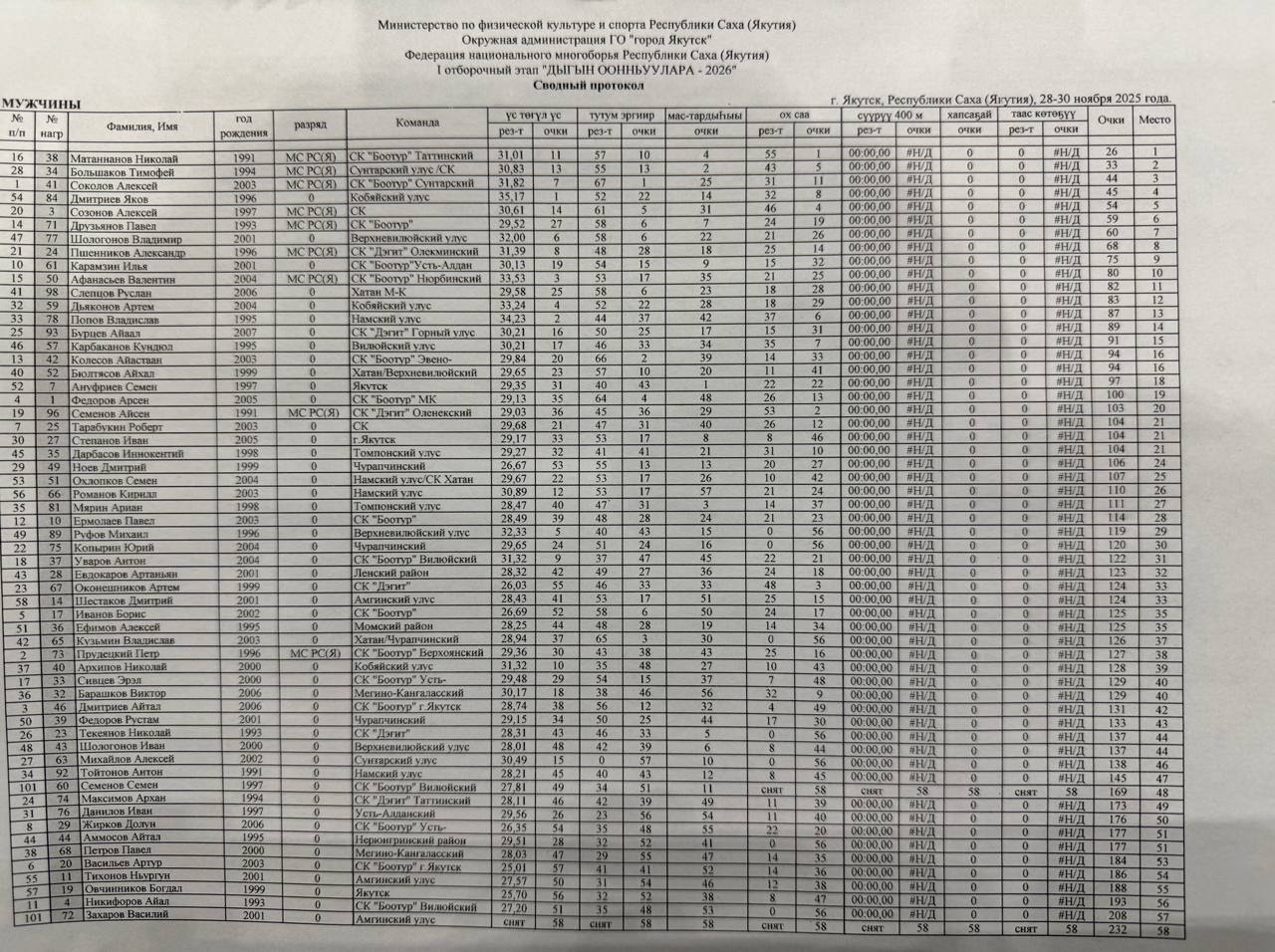 СВОДНЫЙ ПРОТОКОЛ ПОСЛЕ 4 ЭТАПОВ | ОТБОР НА ИГРЫ ДЫГЫНА-2026