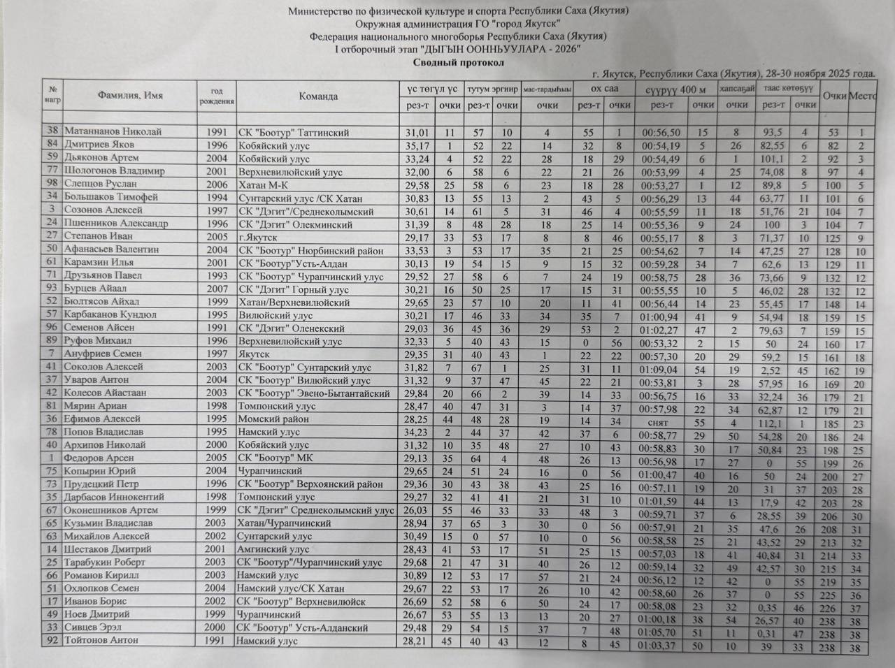 ИТОГОВАЯ ТАБЛИЦА | ОТБОР НА ИГРЫ ДЫГЫНА-2026