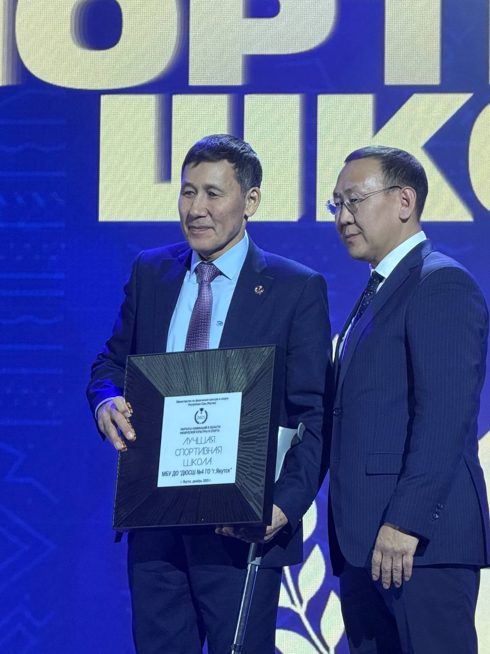 Номинацией«Лучшая спортивная школа» отмечаются организации дополнительного образования, продемонстрировавших значительные достижения в подготовке спортивного резерва, воспитании юных спортсменов и развитии массового детского спорта. Обладателем премии в номинации «Лучшая спортивная школа» 2025 года становится - ДЮСШ №4 ГО г. Якутска. Директор Альберт Иванович Трофимов,