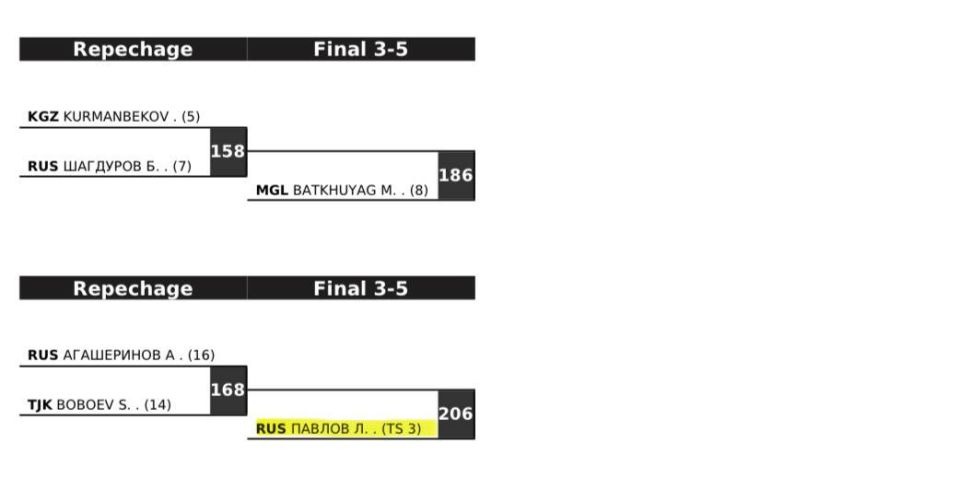 Во второй день соревнований, 2 октября, он поборется за бронзовую медаль с победителем утешительной встречи между Агашериновым и Бобоевым. В полуфинале Лев уступил Рамизу Гамзатову со счетом 1:3Схватки за третье место по программе запланированы на...