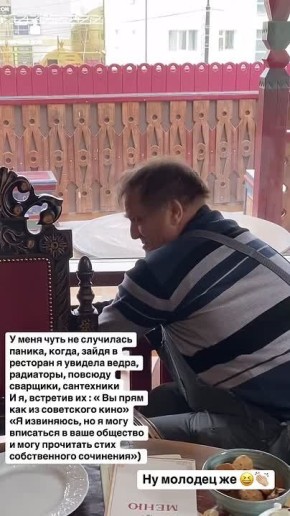 Во время бранча по личностному росту, который проводит Анна, сантехник, работающий в ресторане, рассказал дамам стихи собственного сочинения. @sakhaday