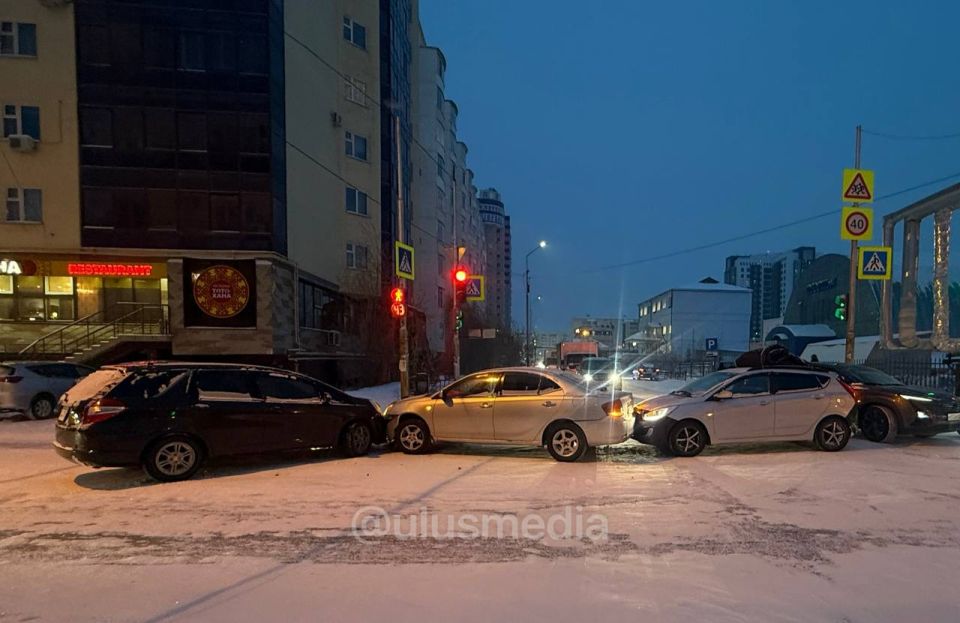 На перекрёстке улиц Горького и Короленко произошло ДТП с участием трёх легковых автомобилей. Из-за аварии движение на участке затруднено.В городе идёт снег, дороги скользкие — будьте осторожны и внимательны за рулём.@ulusmedia...